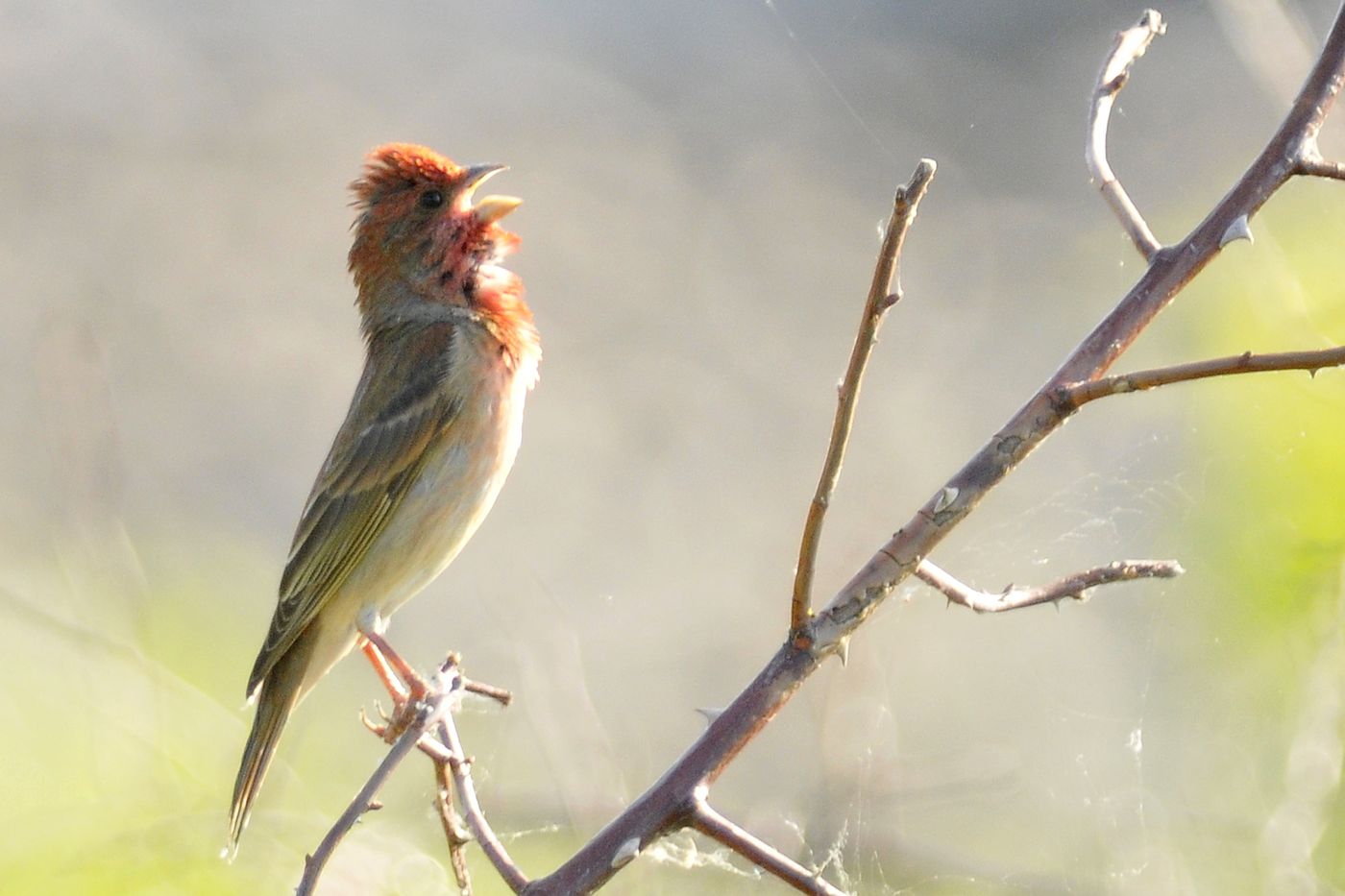 Dziwonię udało mi się wypatrzeć tylko trzy razy w życiu. Dwa razy z dość znacznej odległości, przez lornetkę, a ostatnim razem z bliska. Tym razem to dziwonia wypatrzyła mnie. Samczyk (czerwona głowa i podgardle), któremu najprawdopodobniej nie spodobało się, że na jego terytorium polowałem z aparatem na kaczki, wyskoczył z krzaków, nabrał powietrza w płuca i zaczął mi nadawać nad uchem: „tji-tjitju, tji-tjitju”… Pewnie o tym, że to on jest szefem okolicy i żebym spadał. Długo nie wytrzymałem i wcisnąłem spust migawki. Niestety, czmychnął po pierwszym „strzale”. I gdyby ktoś z Państwa zaczął zastanawiać się nad nazwą ptaszka: „dziwonia” i nad tym, co dziwnego jest w dziwonii, odpowiadam, że… NIC! Tym bardziej że tak na pierwszy rzut oka samiczka tego gatunku niczym nie różni się od szarego, pospolitego wróbla. Piotrek