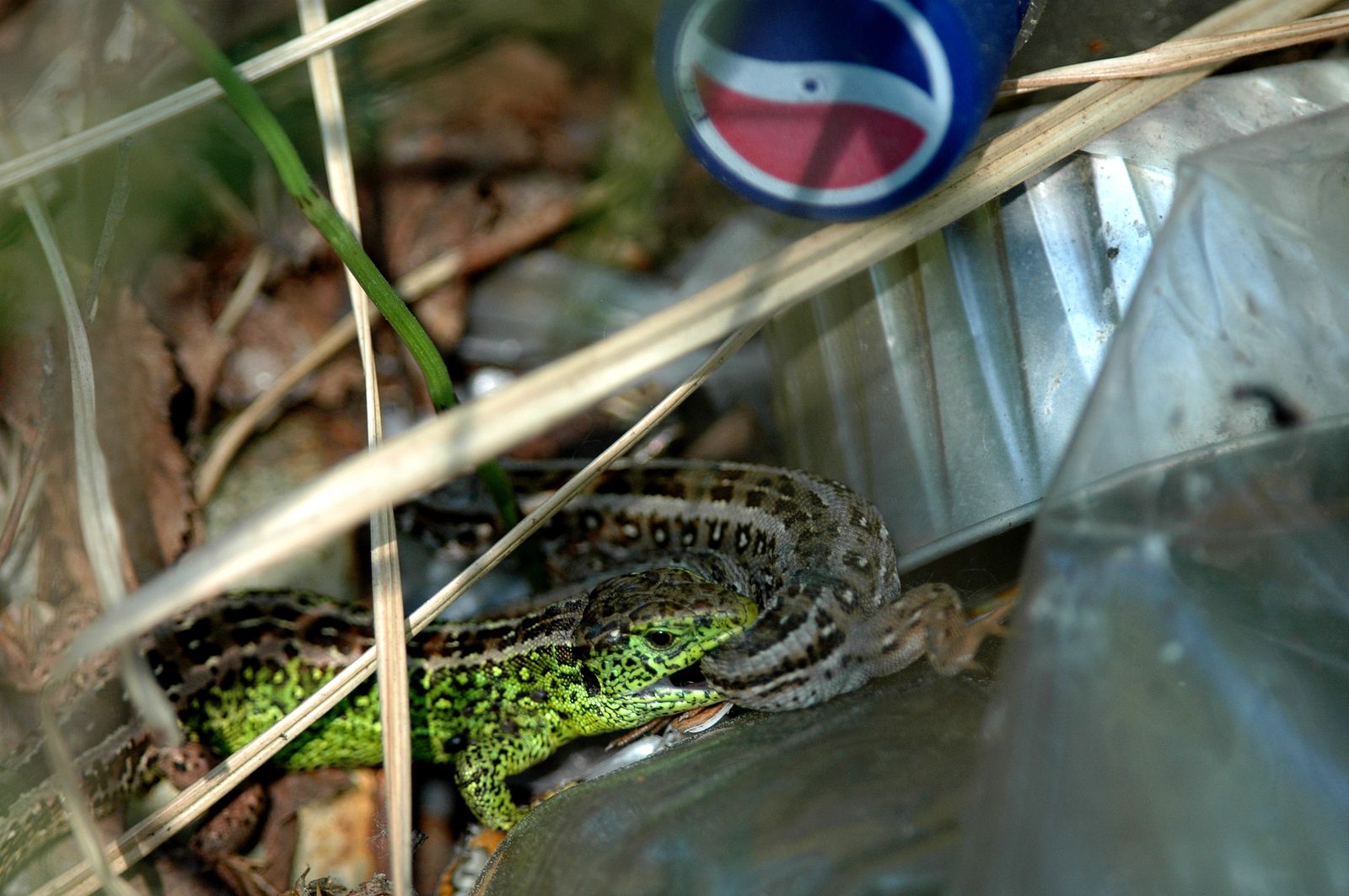 Zwinka, jak większość jaszczurek, w chwili zagrożenia oddziela, co brzmi nieprawdopodobnie, swój ogon od reszty ciała. Po prostu zostawia go. Wtedy napastnik koncentruje się na porzuconym ogonie, a jaszczurka ma czas, żeby ujść z życiem. À propos – i zabrzmi to jeszcze bardziej nieprawdopodobnie – ogon jej później odrasta! Na zdjęciu uchwyciłem zwinkę, która wgryza się w ogon drugiej. W tym wypadku to jednak nie scena przemocy, tylko miłość od pierwszego wejrzenia. Samiec chapsnął samicę i trzymał. Trzymał ją pół minuty. Potem gady poszły w trawę. To małżeństwo jednak dość szybko się rozleci. On będzie starał się tej wiosny zapłodnić tyle samic, ile tylko zdoła, a ona złoży jaja i w ogóle nie będzie interesowała się młodymi. Mimo to szkoda, że ta krótka historia o miłości rozegrała się w lesie na dzikim wysypisku śmieci. Bo choć zwinka jest dość pospolitym gatunkiem, to jej liczebność stale maleje. M.in. z uwagi na zanikanie naturalnych jaszczurzych siedlisk. Piotrek