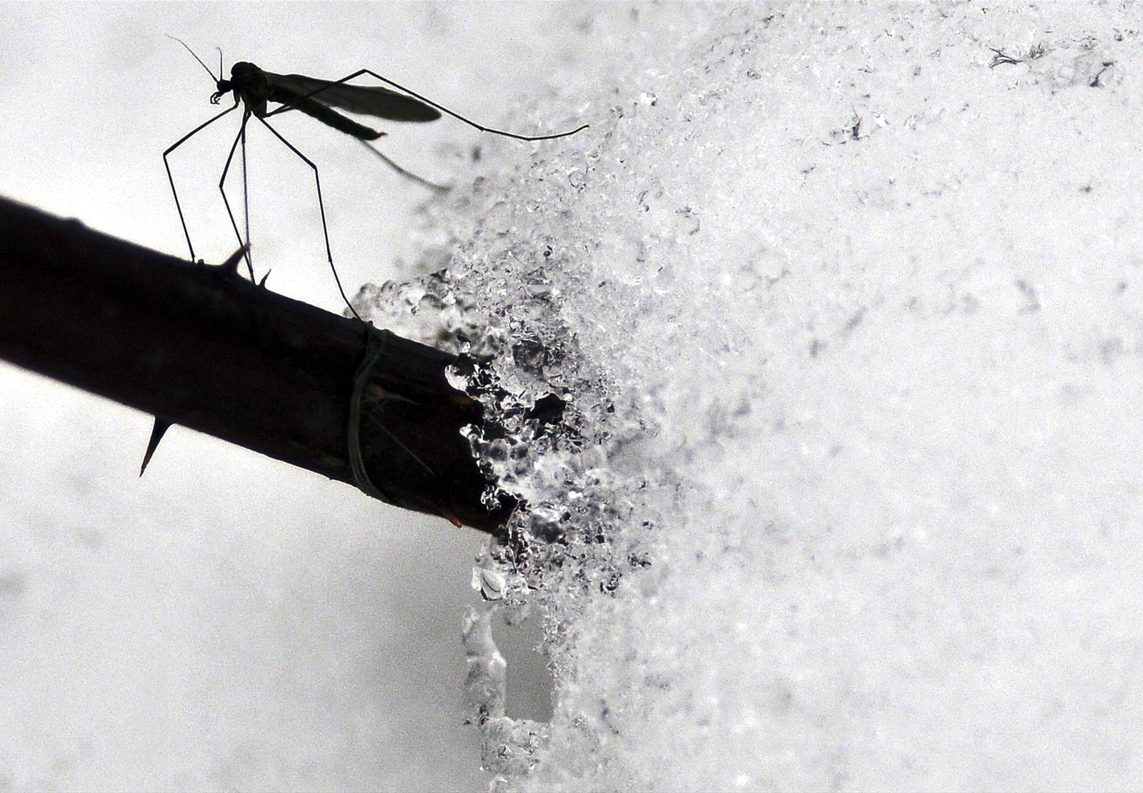 17 grudnia, Tomaszów Mazowiecki. Wydawałoby się, że jak leży śnieg, trzyma mróz, to nie powinno być już owadów. A tu proszę – jegomość na zdjęciu, do złudzenia przypominający komara płci męskiej (panowie są dużo więksi od pań i na szczęście nie kłują), za nic ma zimę. Fruwa. I czasami straszy ludzi. Zauważyłem go na przystanku, jak jednej pani chciał coś szepnąć do ucha. Tylko że to nie komar. To muchówka zimieniowata. Zajada się wyłącznie resztkami roślin, które znajduje na powierzchni śniegu. Nie lubi wiosny ani lata. Tuż przed końcem zimy ginie. Piotrek