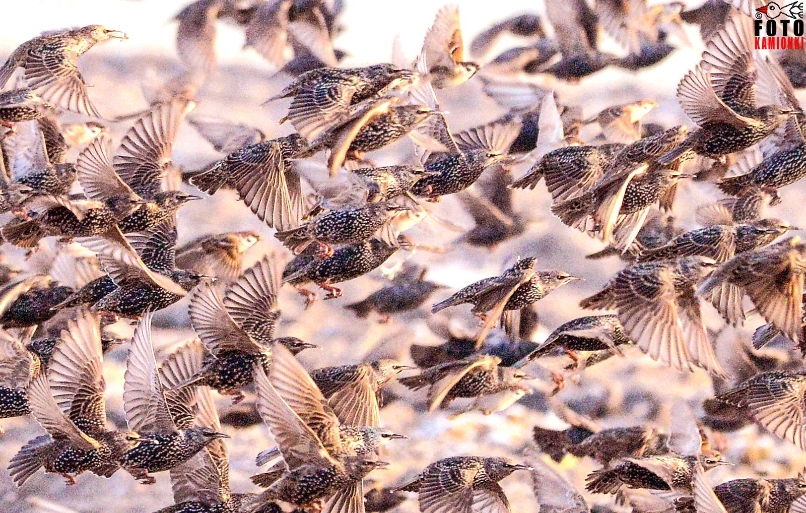 Szpaki, które nie odleciały na zimowiska, harcują teraz na polach. Zebrały się w kilkutysięczne stada, bo wspólnie łatwiej jest im wypatrzyć jakieś pożywienie. Łatwiej jest im też chronić się przed atakami drapieżnych ptaków: myszołowów czy krogulców. W takich sytuacjach wzbijają się w powietrze i stado fruwa to w lewo, to w prawo. Drapieżnik zdezorientowany błyskawicznymi zmianami kierunku ich lotu nie potrafi skutecznie zaatakować konkretnego osobnika i najczęściej rezygnuje. Piotrek