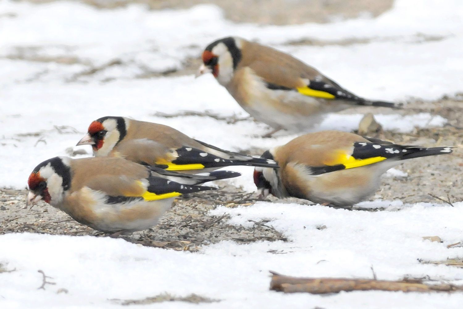 Szczygły znalazły odpowiednie miejsce i łapią oddech przed kolejnymi opadami śniegu Piotrek