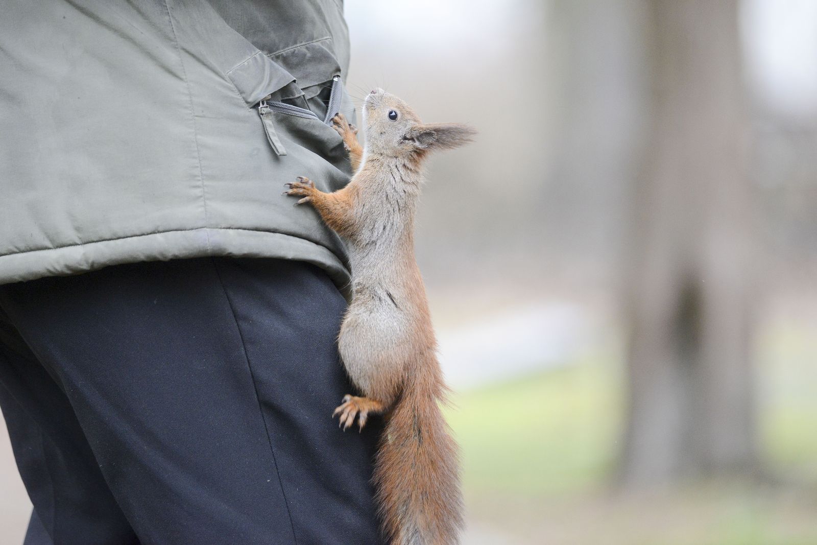 Dlaczego każda wiewiórka ma na imię Baśka? Znane każdemu dziecku nawoływanie: „Basia! Basia, Basia…” tak naprawdę dziwi w naszym kraju jedynie obcokrajowców. Bo obserwują, że na cieszące się popularnością chyba na całym globie imię Barbara reagują wiewiórki. I że ludzie wciąż sterczą pod drzewami w parkach i nawołują… A rude złażą, przymilają się i czekają, aż im się rzuci orzechy. I dlaczego akurat Basia, a nie np. Kasia? Po prostu tak się u nas przyjęło. Podobnie jak to, że na kota woła się: „kici, kici”, na kaczkę: „taś, taś”. Wiewiórki niedługo będą miały młode. I są teraz bardzo, bardzo łase na orzechy. I zdarza się, tak jak jest to pokazane na zdjęciu, że jak widzą ludzi, to nie czekają na żadne tam „Basia, Basia”, tylko próbują skorzystać z samoobsługi. Piotrek